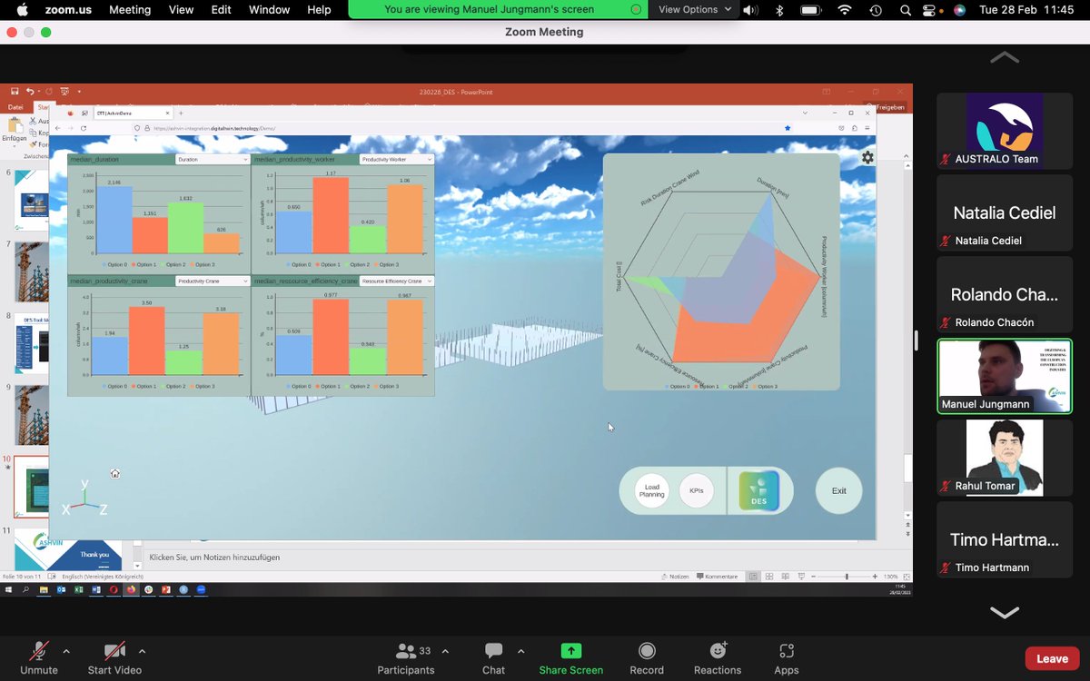 🗣"The #DES #ASHVINTool helps construction site managers to make decisions based on KPIs and simulations visualized in the #DigitalTwin platform. In the future, we will be able to compare data." #ManuelJungman #TechnicalWebinar @TUBerlin