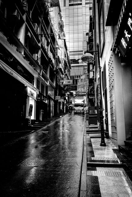One of the many #oldtown streets of #HongKong #Asia, #Photograph shot from the #street during a quiet time after the morning #rushhour. See more #dramatic #blackandwhite #photography, #buy a #print, #poster or #wallart at darrensmith.org.uk #blackandwhitephotography