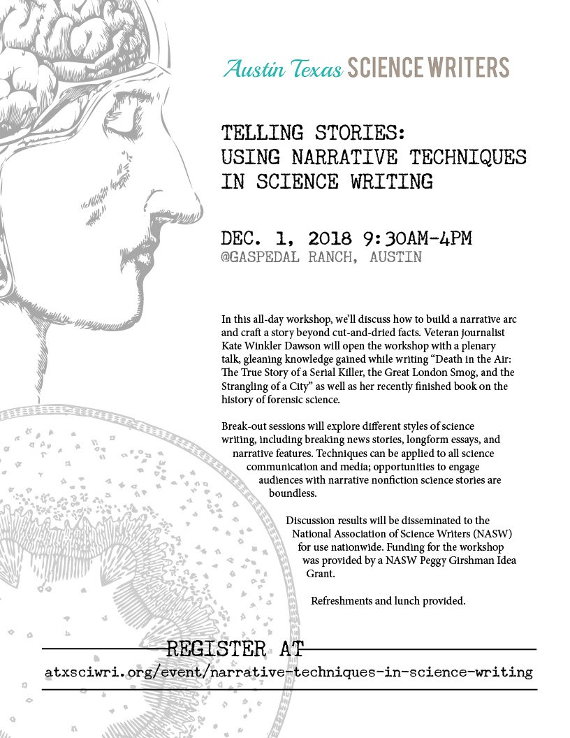 Not yet decided whether you want to increase your writing skills on Dec. 1? Send an email ([email protected]) and I'll send you a special discount code on our upcoming workshop! atxsciwri.org/event/narrativ… #atxevent #NaNoWriMo #sciwri