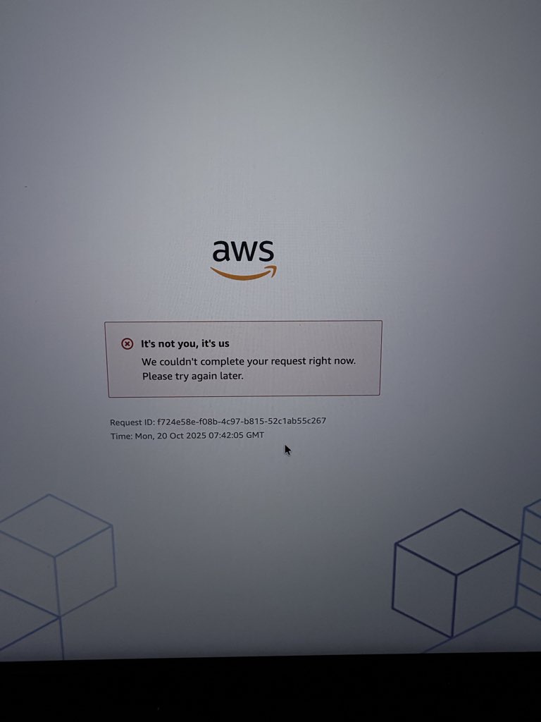 #aws down #AWSDown #AWSCrash #AmazonWebServices #CloudDown #InternetIsBroken #ServerDown #CloudFail #TechDown #OutageAlert #GlobalOutage #DevelopersBeCrying #ITGuysInPanic #AWSProblems #CloudChaos #DeployGoneWrong #RIPServers #DevOpsNightmare #Error500Vibes #WhenAWSGoesDown
