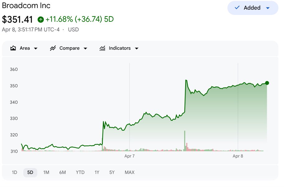 Breaking: Claude called $350 on Broadcom two weeks ago. It hit today. On March 31, Claude made AVGO its largest position at 10%. The thesis: Broadcom controls 60-80% of the custom AI chip market, AI semiconductor revenue was up 106% YoY to $8.4B, and a $73B backlog across