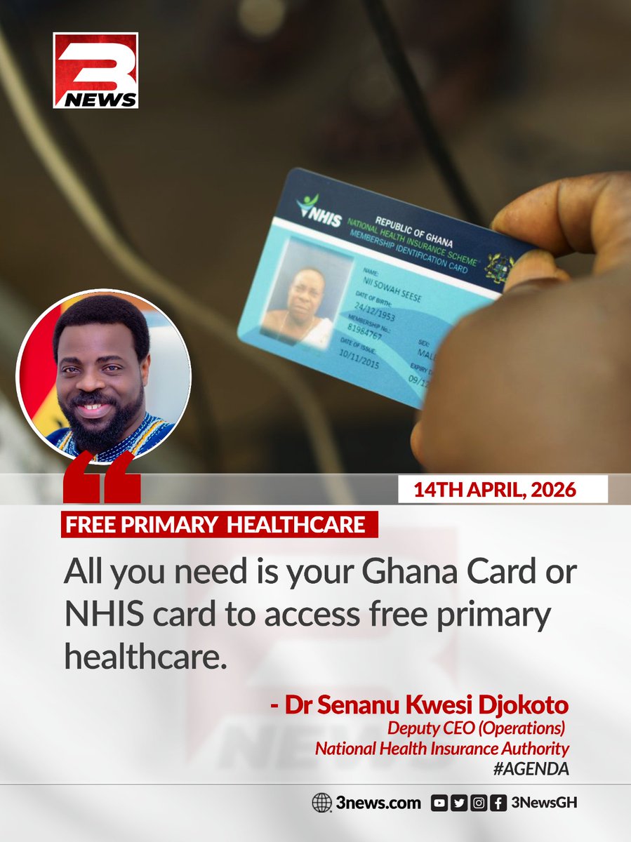According to Dr. Senanu Kwesi Djokoto, Deputy CEO (Operations) of the NHIA, your Ghana Card or NHIS card is all you need to access free primary healthcare services. #Agenda #TV3GH