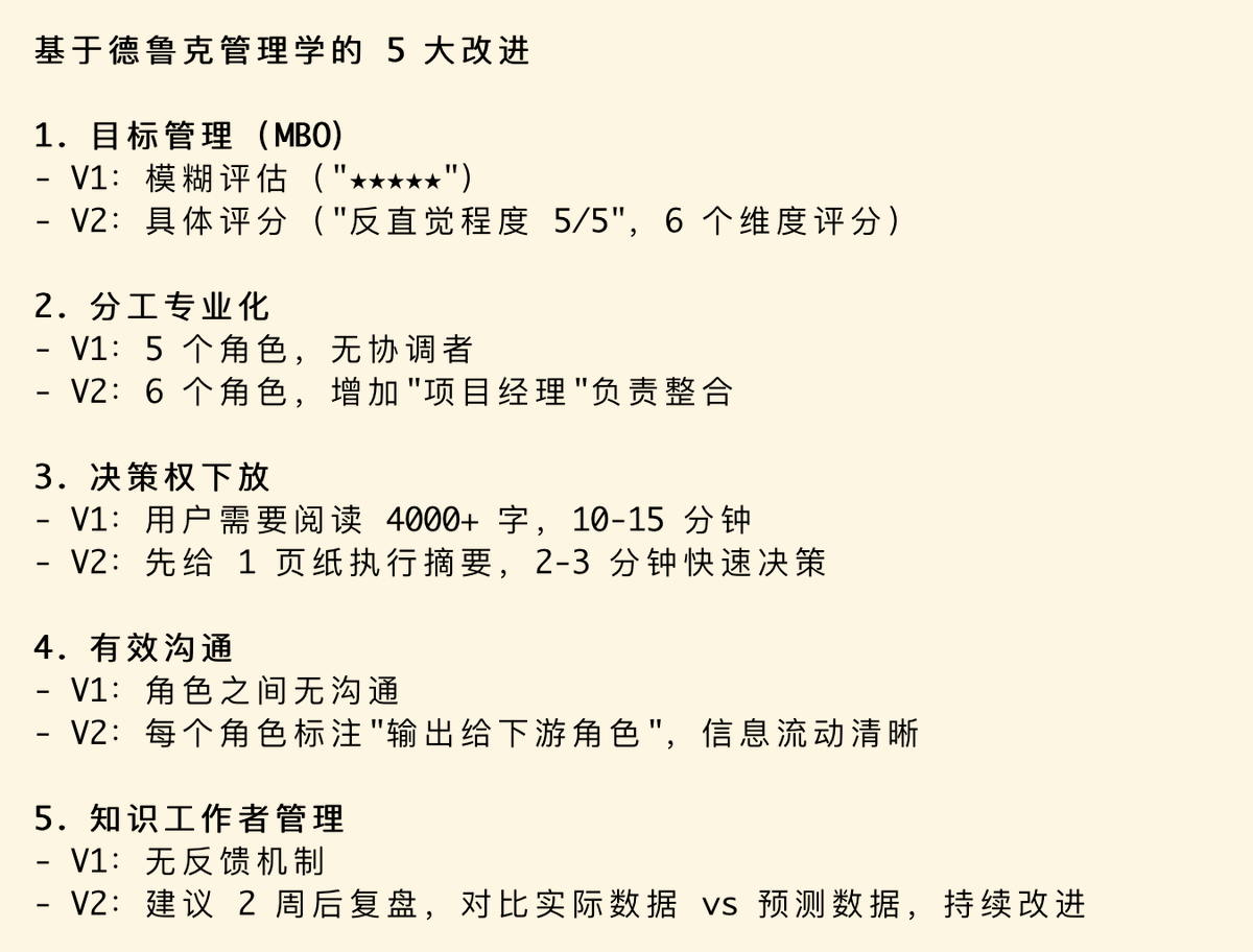 有人用Claude Code设计了一个Agent Team,专门处理选题流程。一开始5个Agent写了4700字,太长了根本读不完。 后来用德鲁克管理学优化Agent团队结构,效果立竿见影。 Agent管理Agent,管理学经典派上用场了。这叫"用组织理论治理AI"。 #ClaudeCode #AgentTeam #德鲁克 #管理学