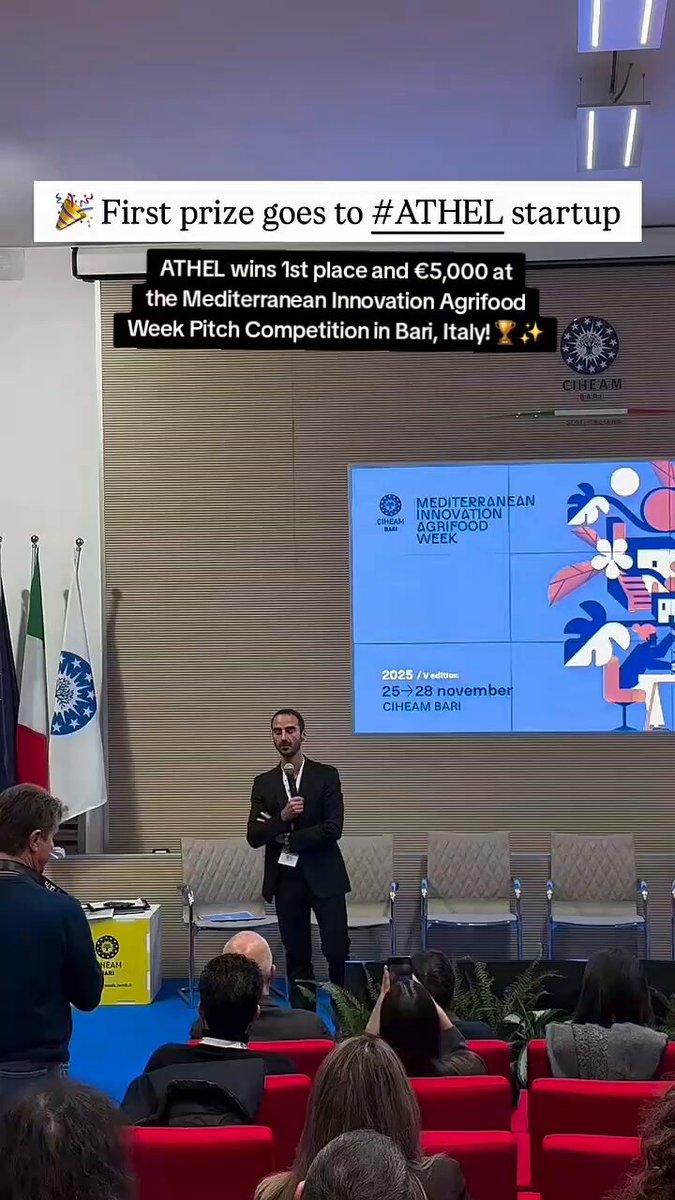 🏆 WE DID IT!🌞✨️ ATHEL wins 1st place & €5,000 at the Mediterranean Innovation Agrifood Week Pitch Competition in Bari, Italy! The future of #African #agritech just got brighter🌍🚀 #AthelEnterprises #EcoMpishi #AgrifoodInnovation #CIHEAMBari #CleanCooking #Sustainability