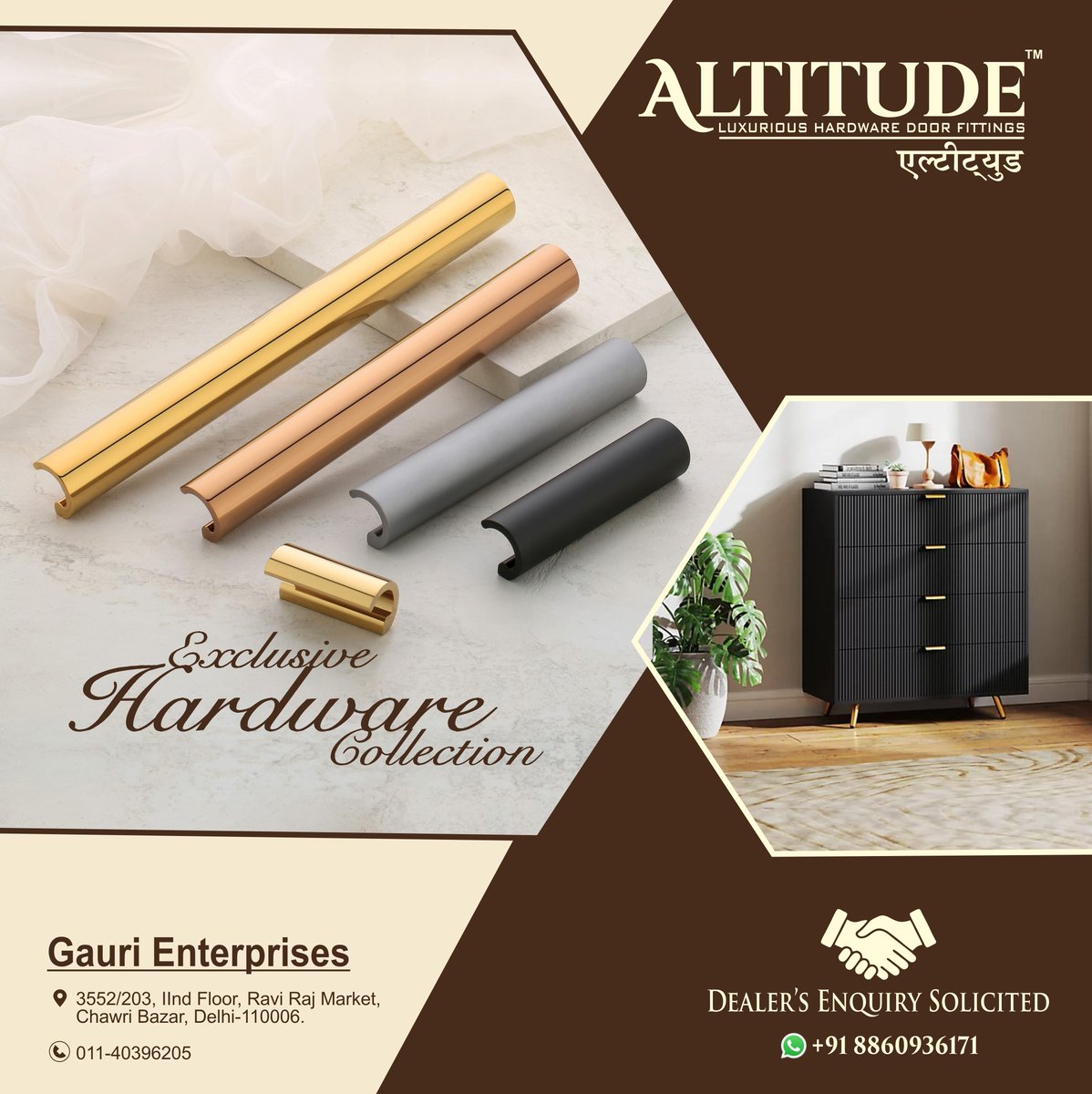 ALTITUDE Hardware For Enquiry Via WhatsApp: rebrand.ly/GauriEnt GAURI ENTERPRISES Mr. Sandeep Maheshwari +91 7678574145,+91 7827434759 Web: gaurienterprisesdelhi.com . #AltitudeHardware #LuxuryDoorFittings #PremiumHardware #DesignerHandles #CabinetHandles #IHSNDigital #delhi