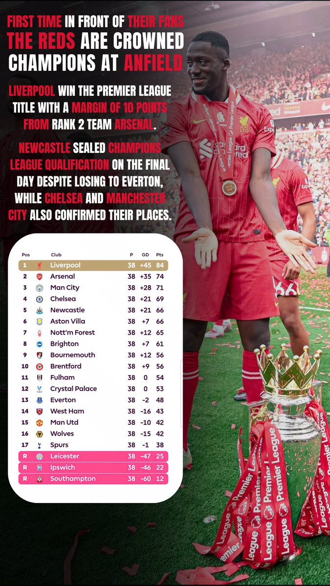 Liverpool crowned champion at anfield #ChampionsAtAnfield #AnfieldGlory #PremierLeagueChampions #AnfieldKings #RedsOnTop #TitleAtAnfield #LiverpoolFC #AnfieldCelebration #TheReds