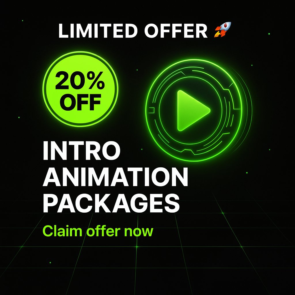 🎬 Bring Your Brand to Life — and Save 20%! For a limited time, get 20% OFF our Intro Animation Packages — crafted to give your brand the professional edge it deserves. 🚀 Don’t wait — Claim your offer now! #AnimationOffer #IntroDeal #MSquareDigital #ClaimOffer #LogoReveal #DMus