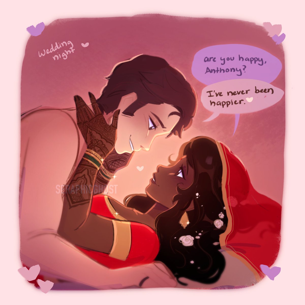day 1 of #AnthonyWeek ! the prompt was "someone new" so i thought i would doodle charlotte/chhavi joining the family! #kanthony #bridgerton