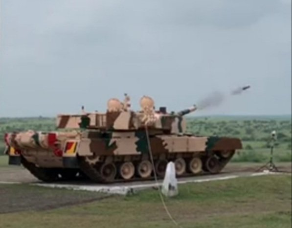 Laser Guided #AntiTank Guided #Missile (ATGM) was successfully test fired from MBT #ArjunTank at KK Ranges, Armoured Corps Centre and School (ACC&S) #Ahmednagar on 22nd Sep 2020.