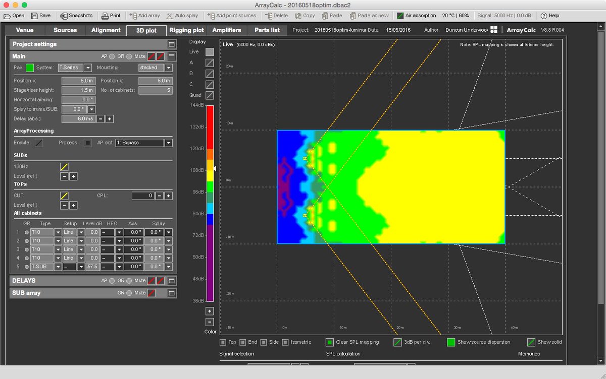 Got a chance to learn about and use the software #ArrayCalc (Array Calculator) today at work. It’s software used to determine the angle degrees of line array speaker placement to maximize frequency output pitch and to counteract delay from speaker distances! 🤓🤓🤓 #AudioTech