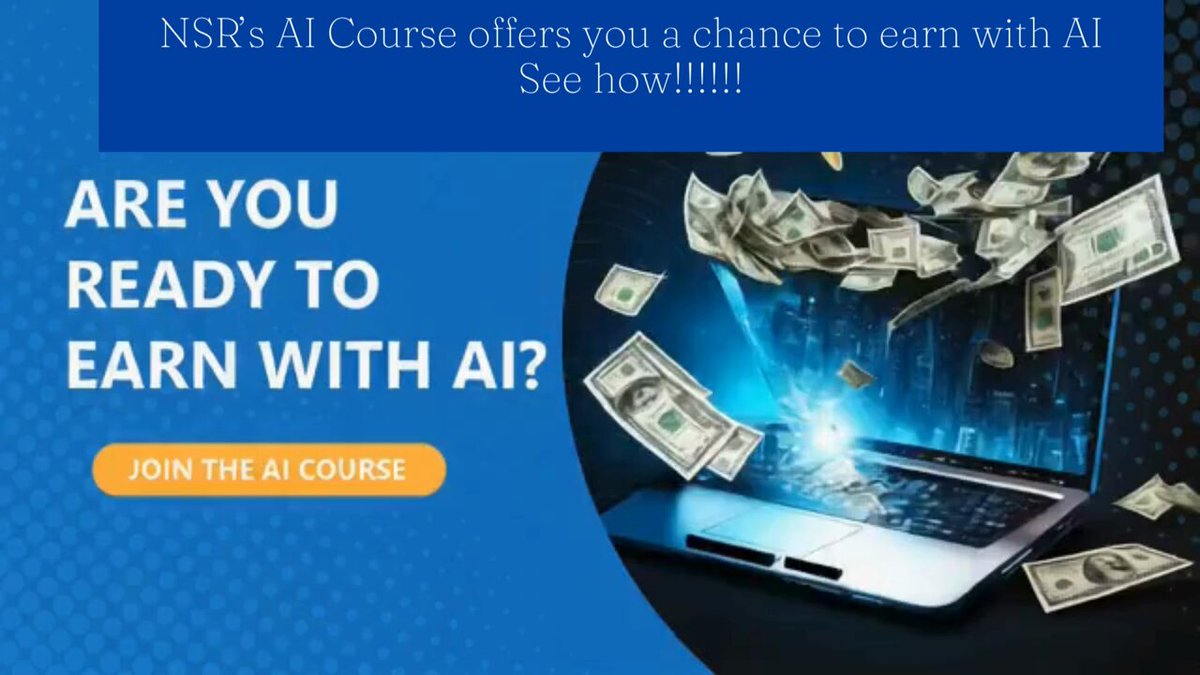 Are you ready to earn with AI? The world is moving fast — and those who understand Artificial Intelligence are the ones leading, creating, and earning more than ever.#EarnWithAI #ArtificialIntelligenceCourse #NSR #FutureSkills #LearnAI #TechCareers #Innovators