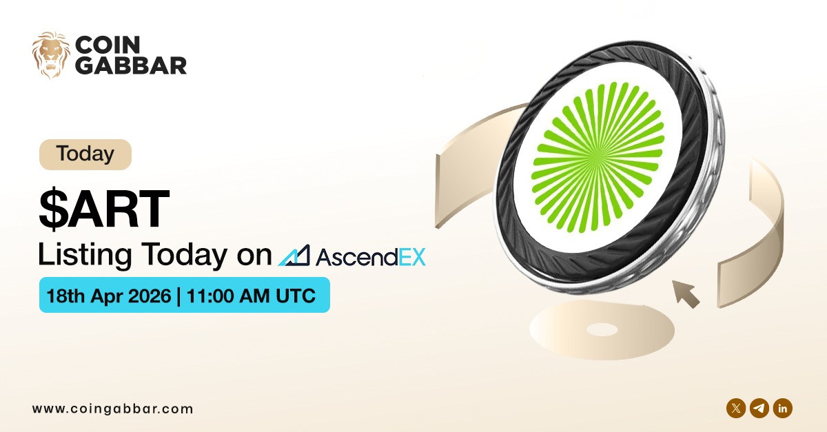 Today Listing Alert ArtGis Finance $ART is listing on AscendEX. For More Details - coingabbar.com/en/crypto-list… ㆍ April 18, 2026 ㆍ 11:00 AM (UTC) ㆍ Pair: ART/USDT #CoinGabbar #AscendEX #Listing #ART