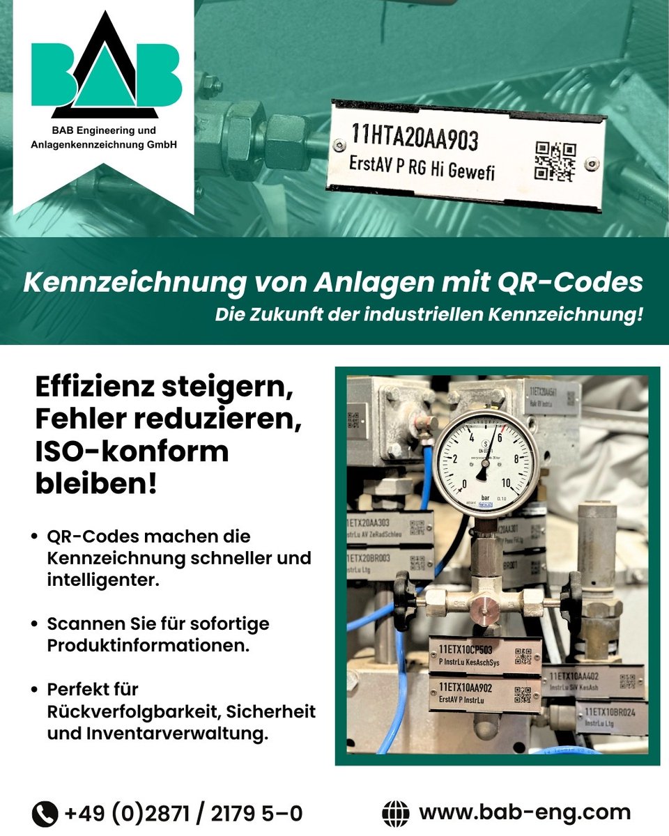 Boost asset management with QR codes 🔍 ✔ More efficiency ✔ Fewer errors ✔ ISO compliant 📱 Scan. Manage. Optimize. 🔗 bab-eng.com #QRCode #AssetManagement #Industry