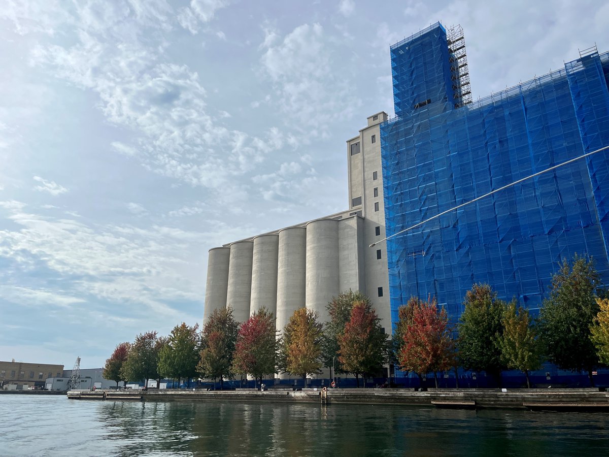 Autumn #atthewaterfront. 🍃 🍂 Take a walk and enjoy the changing colours! We love this gradient of trees by the restored Canada Malting Co. Silos.