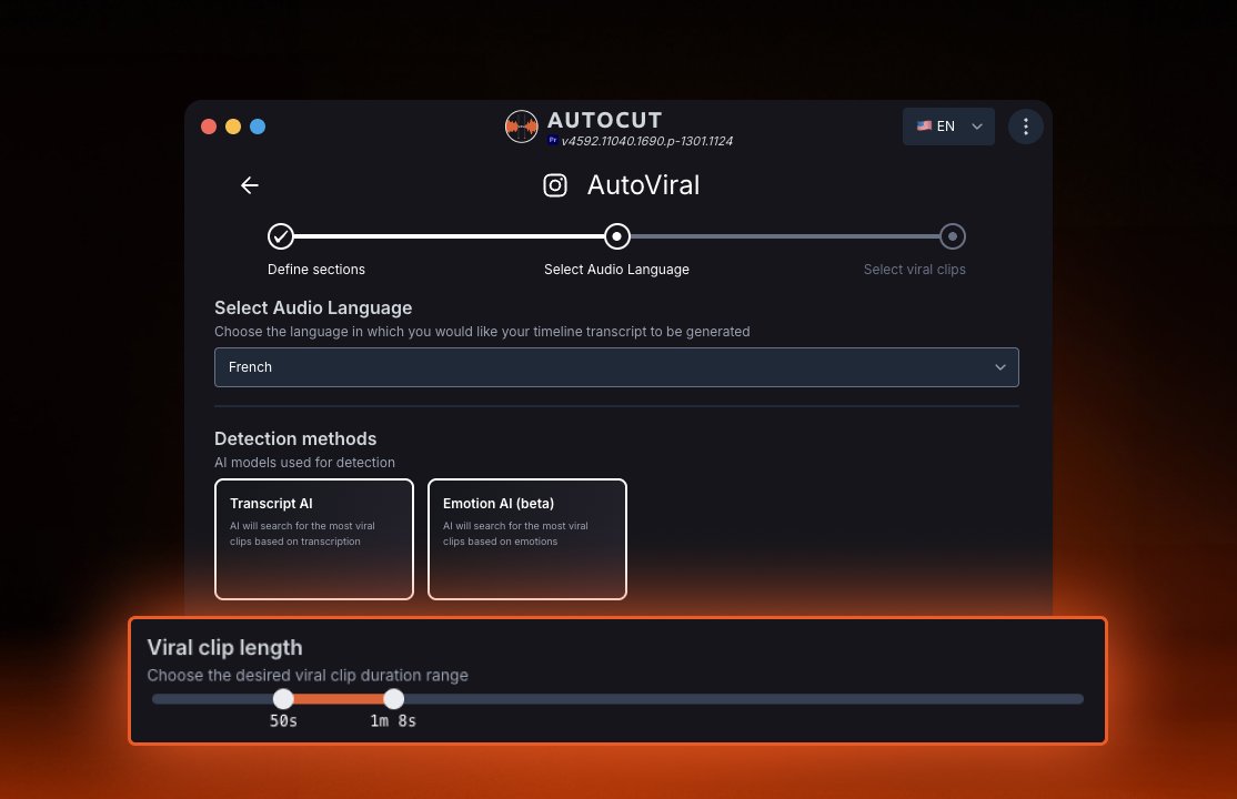 Viral is not random. AutoViral just got smarter. 🎯 Guide the AI (presets + prompt) 🎯 Control clip length 🎯 Understand why it works (Hook. Trend. Engagement. Emotions.) Less guessing. Better clips. Try it free 👉autocut.com/en/download/?r… #AutoCut #VideoEditing #PremierePro
