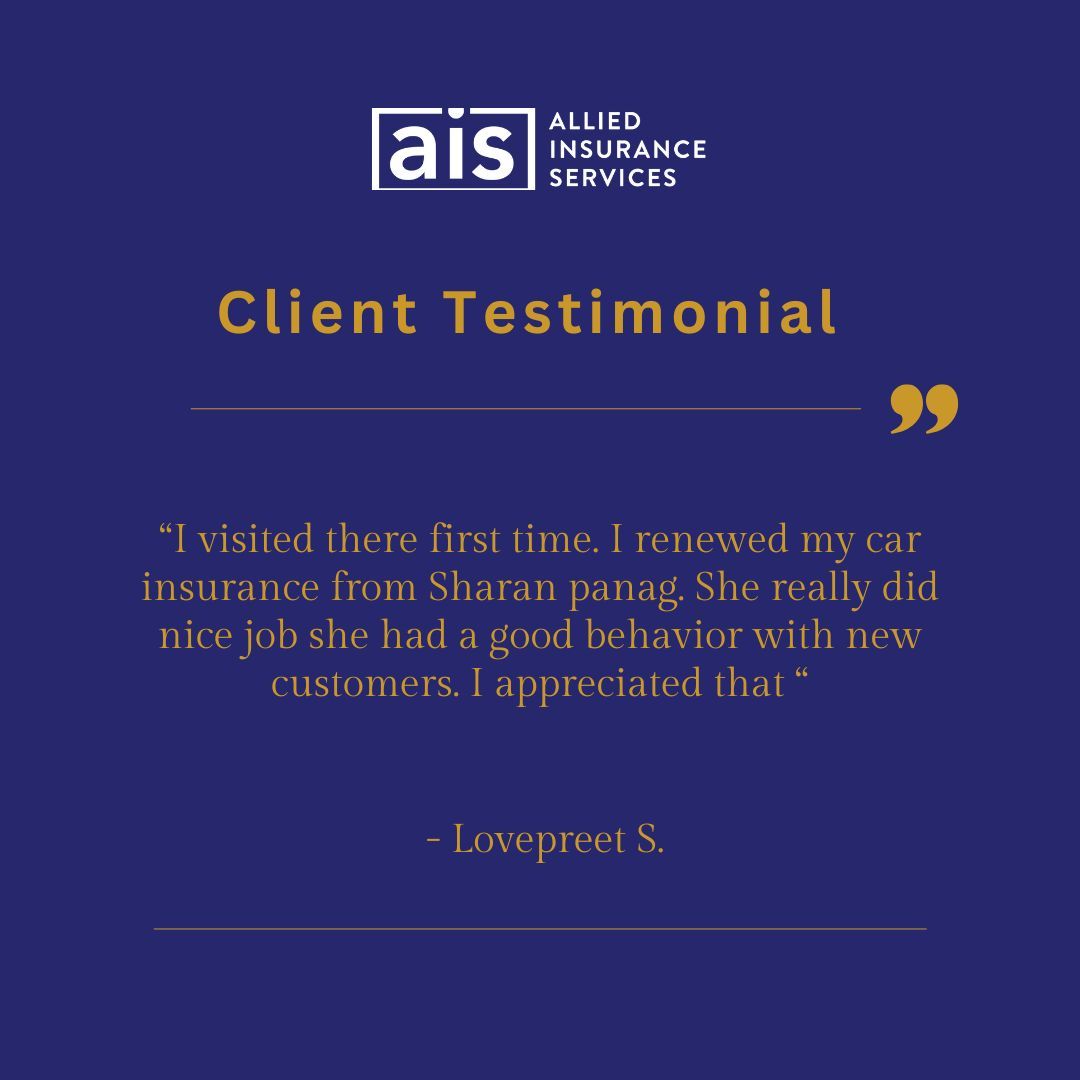 Thank you to Lovepreet S. for trusting Allied Insurance Services. If you’re renewing your car insurance or exploring better options, our team is ready to help. aisins.ca #ClientTestimonial #AlliedInsuranceServices #AutoInsuranceBC #BCInsurance #CustomerCare