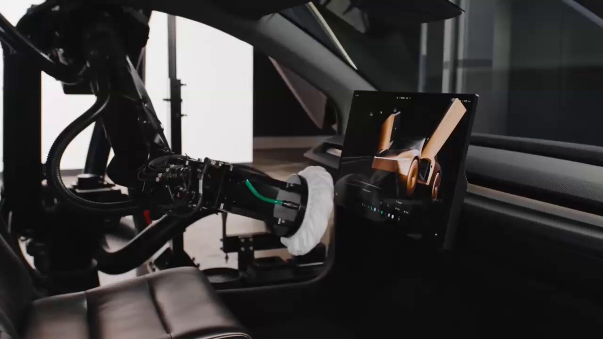 車庫に戻ってきた自動運転電気自動車の車内を掃除するロボット youtu.be/vVFXsk0n24o #AutonomousVacuumRobot #RoboticCleaner #VacuumCleaner #cybercab #Tesla