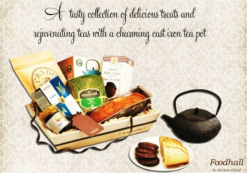 A collection of rejuvenating teas, a charming iron teapot and tasty selection of delicious treats! #AvailableAtStore