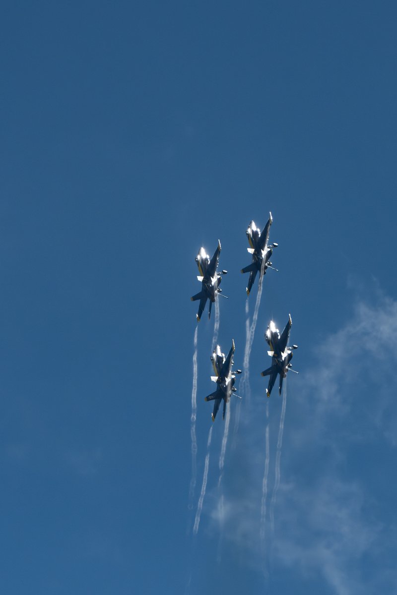 Four jets in perfect formation and one off to the side like, “I’m part of the group, I just have a different personality.” @BlueAngels #AviationPhotography #USNavy #AirShowLife #FormationFlying #CRSImages