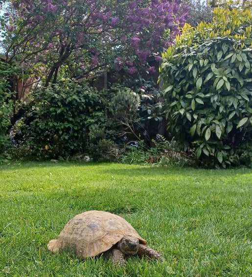 Cooler today. This is #ALBERTthetortoise reporting late sun. A #bath, big #feed, good #patrol. Thanks for #Book-versary comments yesterday. HE is prepping for a #bookshop #event this #weekend. I have issued guidance. Hope the week is being #kind. #TakeCare AlbertTortoise.com