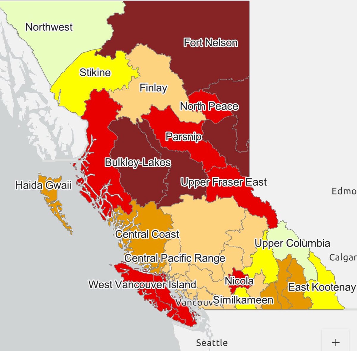 As an Atmospheric River takes aim at the #BC central & north coasts, it should help alleviate drought conditions in those regions. Unfortunately places in the NE & Peace regions under a multi-year drought continue to remain abnormally dry. #BCwx #BCdry #BCdrought @ThierryGooseBC