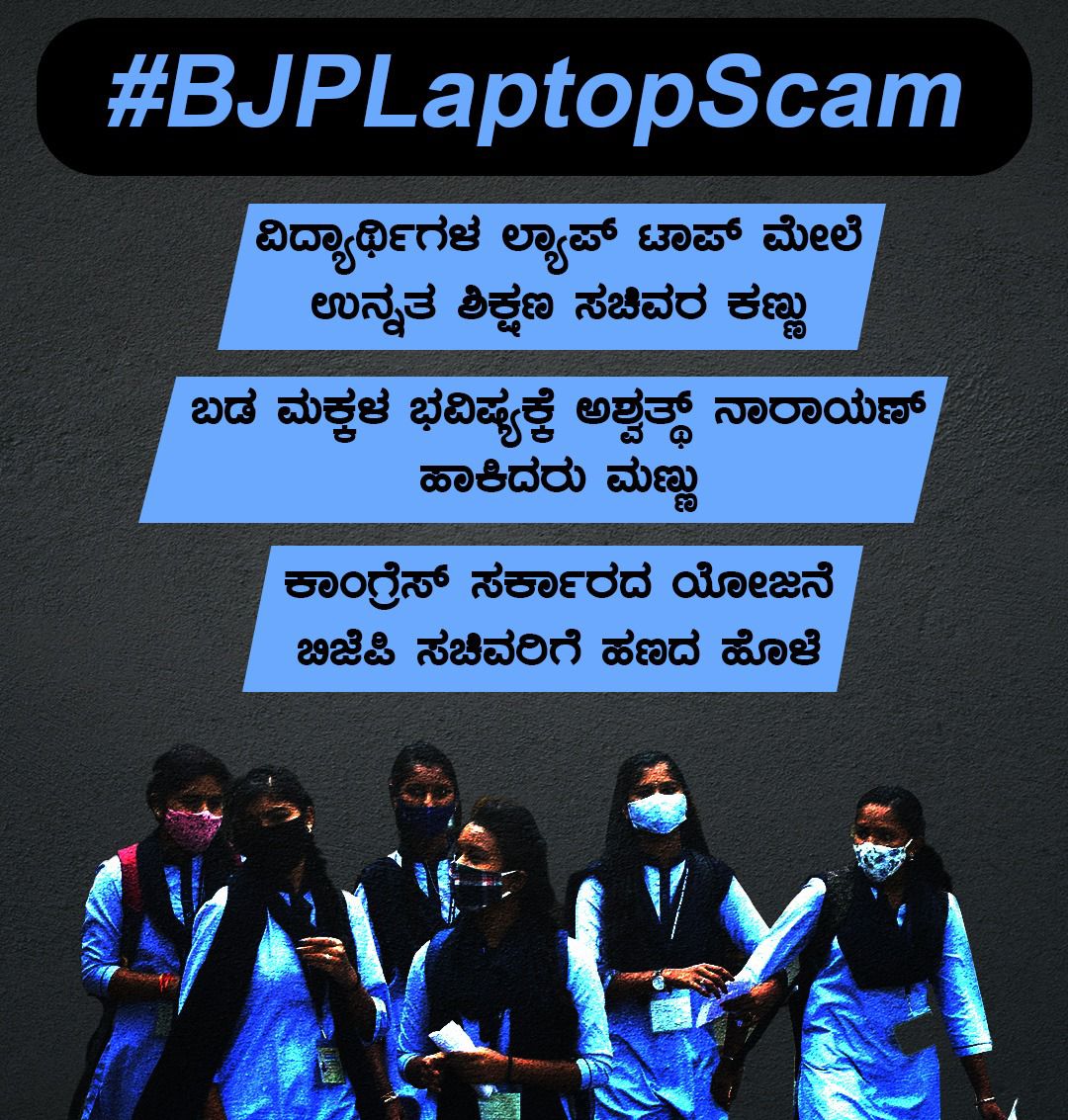 ಕಾಂಗ್ರೆಸ್ ಸರ್ಕಾರ ಜಾರಿಗೆ ತಂದಿದ್ದ ಲ್ಯಾಪ್ಟಾಪ್ ಯೋಜನೆಯಲ್ಲಿ150 ಕೋಟಿ ಹಣ ನುಂಗಿದ ಉನ್ನತ ಶಿಕ್ಷಣ ಸಚಿವರು. #BJPLaptopScam #bjpcorruptionfiles
