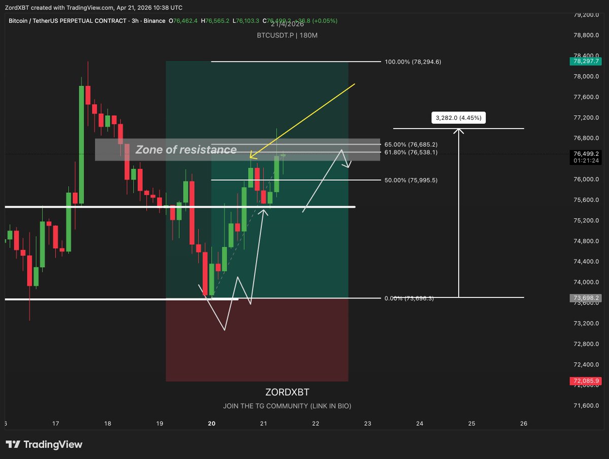 $BTC Took the short risk at $76k and As Always I posted two posts, informing my bias, plan and idea about why I was thinking longs are chasing this pump. Those who want to learn, they will learn. For the rest, no one can open your vision or your mind. #btc #btcusdt #bitcoin