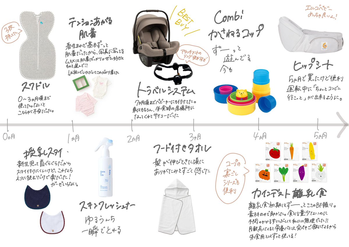 \ 0歳児買ってよかったもの / もうすぐ1歳になるので、0-12ヶ月の時系列に沿ってまとめてみた〜!!👶🏻 リンクあるものはリプで最安値(私調べ)のところ貼ってます! 皆さんのも教えてください〜〜〜🫶💛