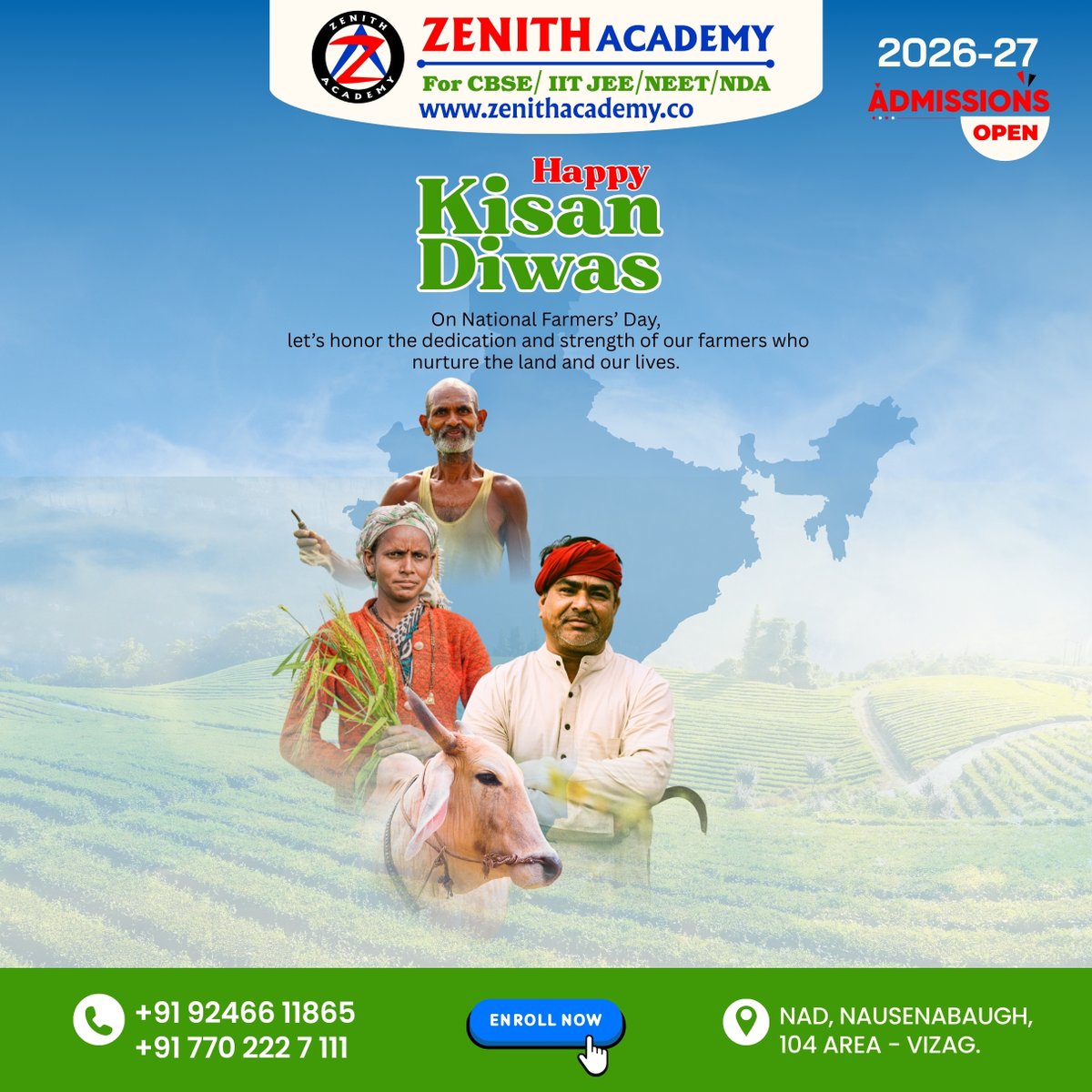 🌾 Happy Farmer’s Day! 🌾 From all of us at Zenith Academy, we salute the hands that feed the nation and the hearts that nurture the future. 🚜 Your hard work, patience, and dedication inspire generations—just like education does. #FarmersDay #BackboneOfIndia #ZenithAcademy