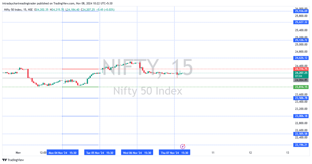 x.com/Intraday_Trad3โฆ ๐จNifty and Bank Nifty took support at the posted levels of 24,064 and 51,764, respectively. Plan your trades accordingly. #StockMarket #NiftySupport #BankNiftySupport #MarketCorrection #Nifty50 #BankNifty #IndianStockMarket #Sensex #Trading #Investing
