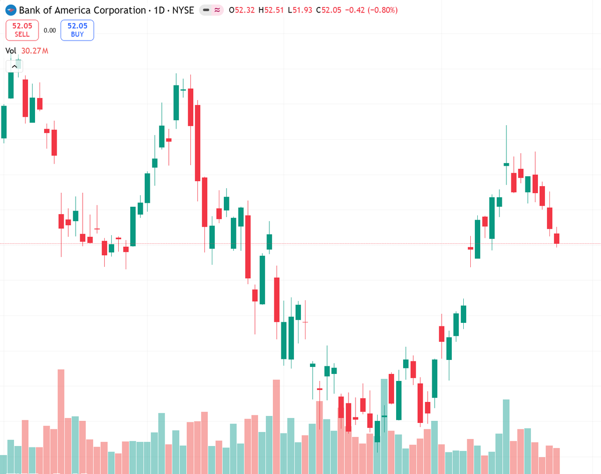 BAC: Wealth, cards, payments growth + AI efficiency. Strong Q1, regulatory wins. Near 52-wk high, pullback risk. Short-term NEUTRAL. Wait for $53.5 support. Risk: Market volatility & rate policy shifts. #BAC #BankofAmerica #NYSE