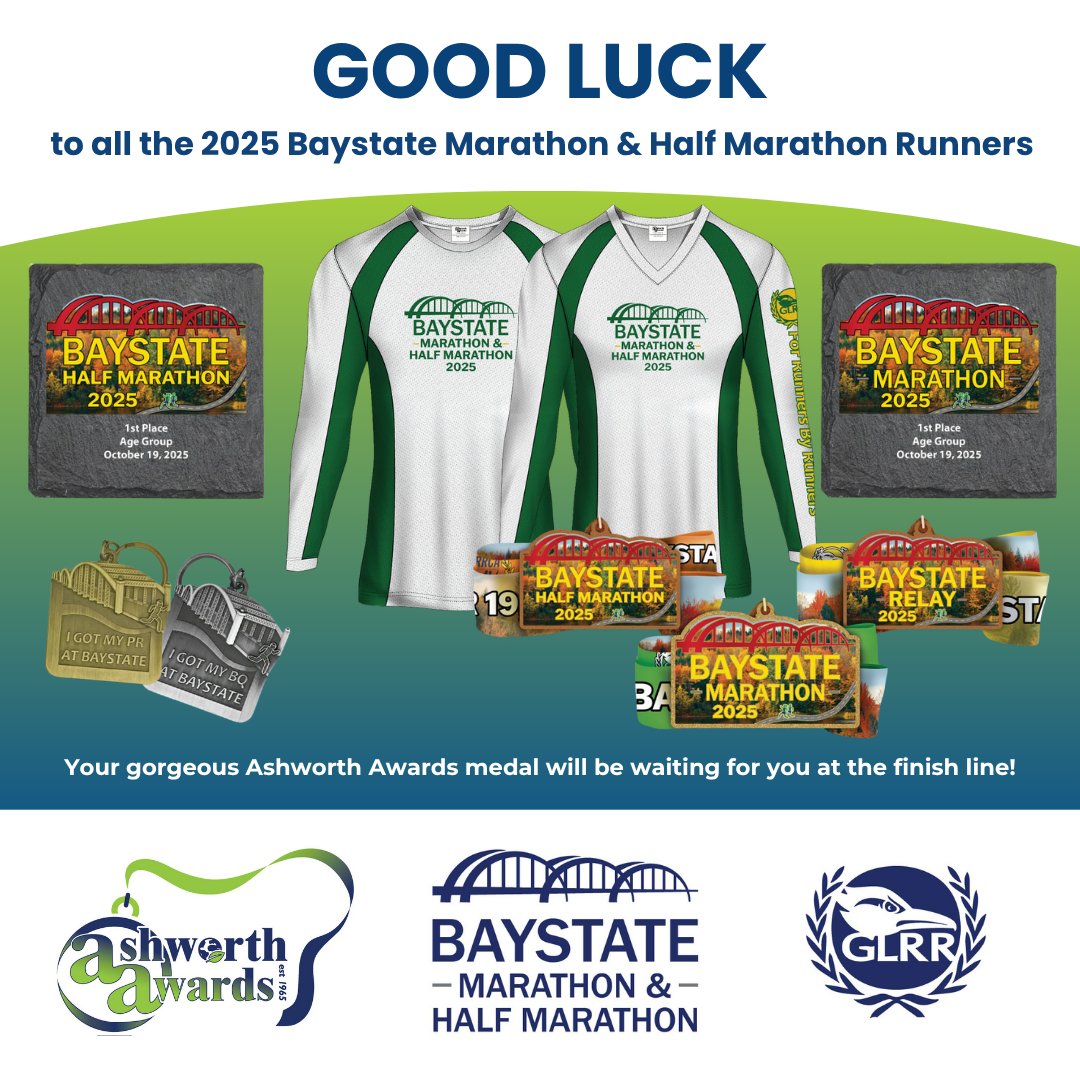 We are thrilled to sponsor the 2025 #BaystateMarathon & #HalfMarathon coming up on Sunday, October 19th! From shirts and medals, to pins and feather flags, #AshworthAwards is helping make this event a race to remember. We’ll see you there! @RunBaystate