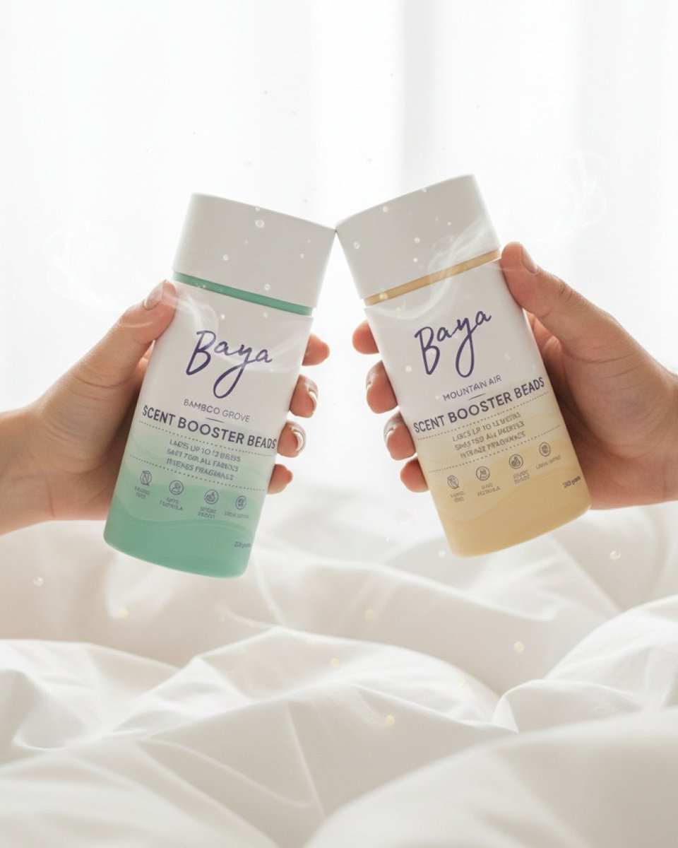 Freshness that doesn’t fade. 🌿 Baya Scent Booster Beads release their scent slowly with every wear, keeping your laundry smelling clean, calm, and comforting for weeks. #BayaLife #ScentBoosterBeads #EcoLaundry #SustainableLiving