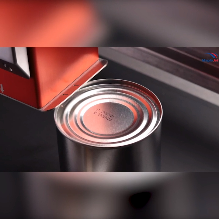 Hx Nitro TIJ printer showing high-throw distance printing onto tin can. #datecodeprinter #TIJdatecoder #BestTIJdatecoder #tincanprinting #Maplejet #HxNitro