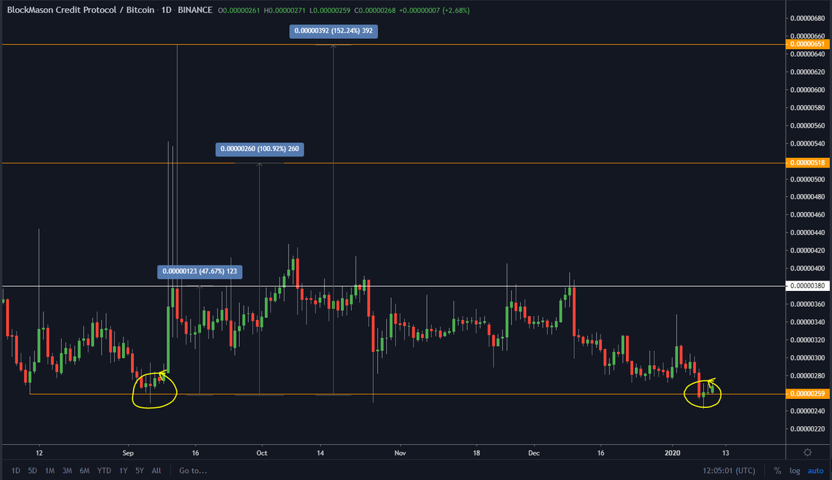 #DoubleBottom on #blockMason BUY #BCPTBTC 510 STOP 460 TARGET 580/700/950 MEDIUM TERM #bcpt $BCPT #bitcoin #BTC