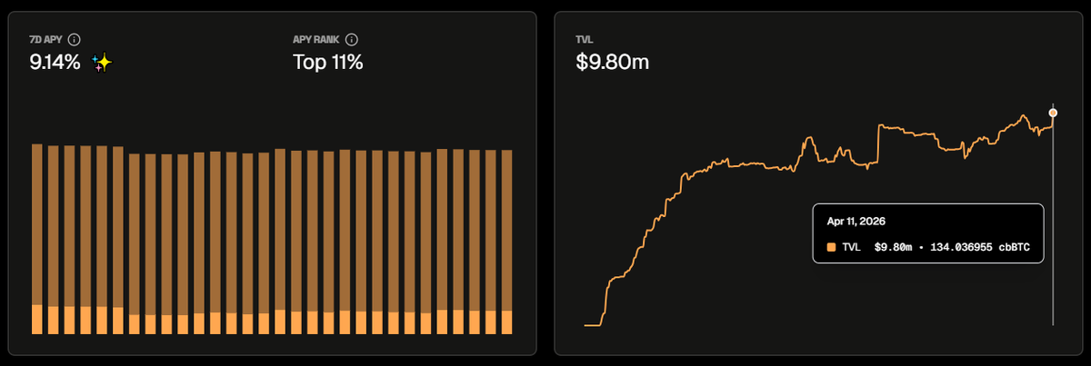 The amount of Bitcoin deposited into the yoBTC vault is at an ATH. The vault launched eons ago — April 11, 2025, to be exact — and now holds 134 BTC worth nearly $10 million. Shout out to the yield sources: @StakeDAOHQ, @AcrossProtocol, and @aave 🤝