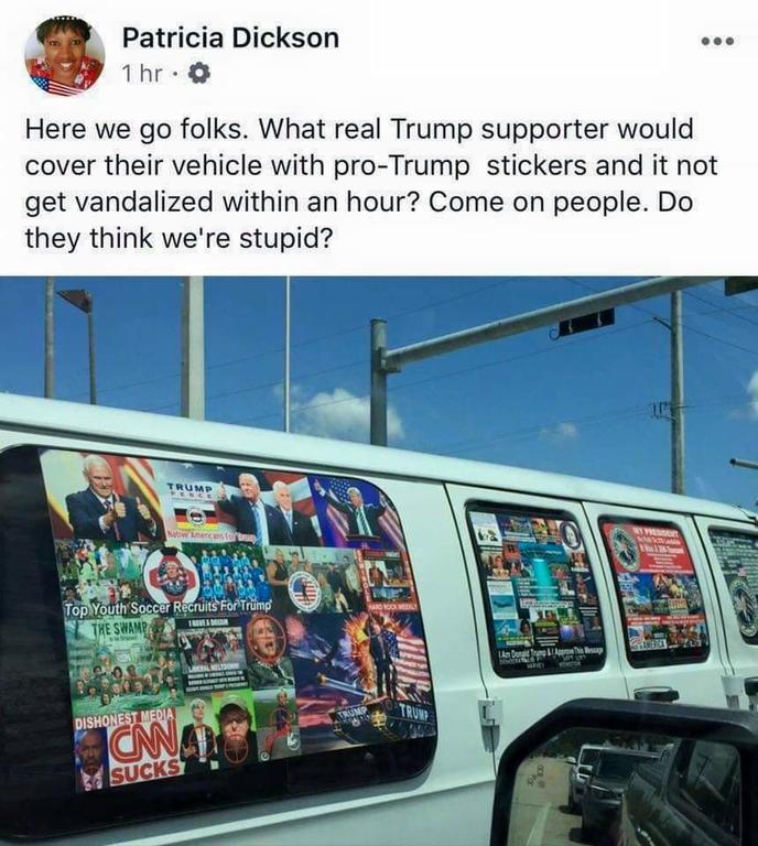 Why did the @FBI just cover this guys sticker covered van? I want to see what’s on the stickers... #Coexist #ImWithHer #BombMeToo