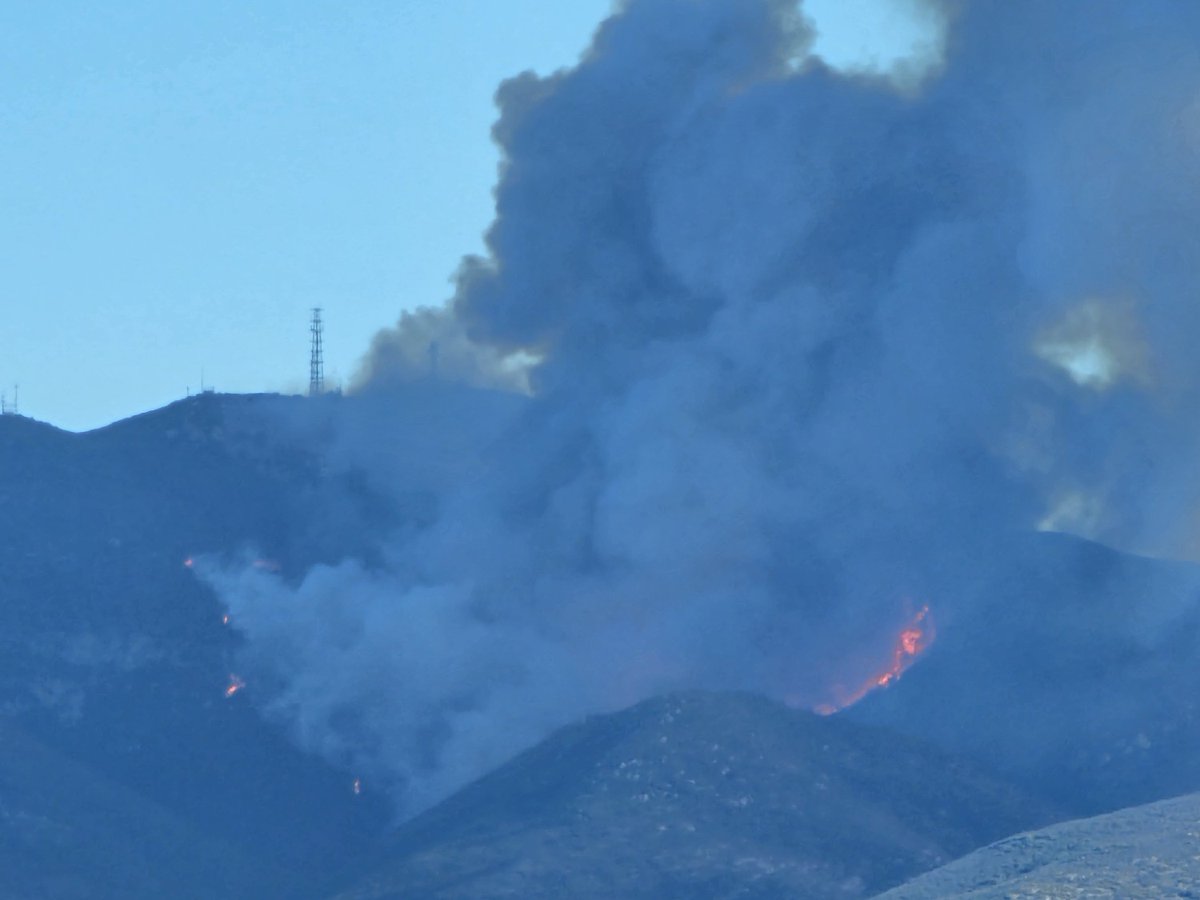 #BREAKING - New Border 2 fire has started a 1/2 Mile West of Doghouse Junction, Otay Mountain. Fire is spreading is at 150 acres and spreading moderately. #BorderFire2