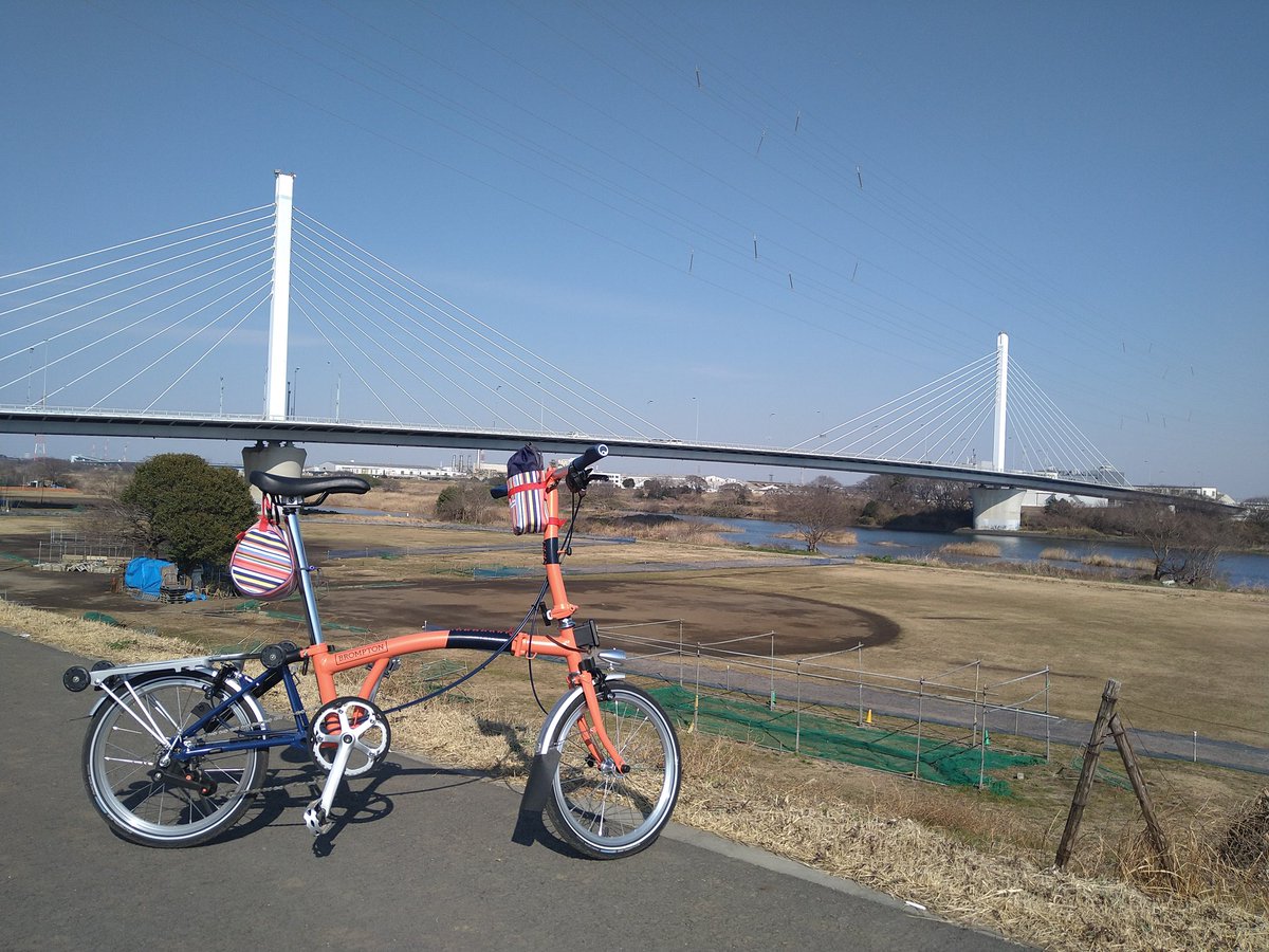 【SAKURA×BROMPTON】 伊豆の国シクロクロスにブロンプトンを持ち込んで狩野川沿いの河津桜と📷🌸 午前中は青空ものぞいて春らしいお天気でした。 今度は仕事のついでじゃなく、コーヒーセットでも持ってゆっくりお花見したいな #ブロンプトン #bromptonlife #brompton #河津桜 #お花見ライド