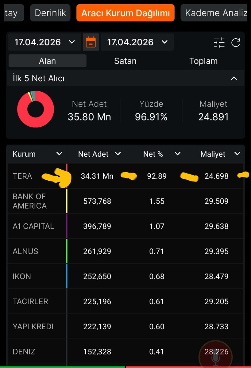 #Tera Cuma günü kapanışa yarım saat kala malum hissemizden #Bulls tan 24.70 maliyetle 10M+ 10M+10M+3.3M şeklinde 34.31M mal aldı.Bu hafta da alımlar devam ederse. CADIR KARIŞIR. 😀😀😀😀 #empae #mcard #atatr #netcd #lxgyo #svgyo #grtho #zgyo #glrmk