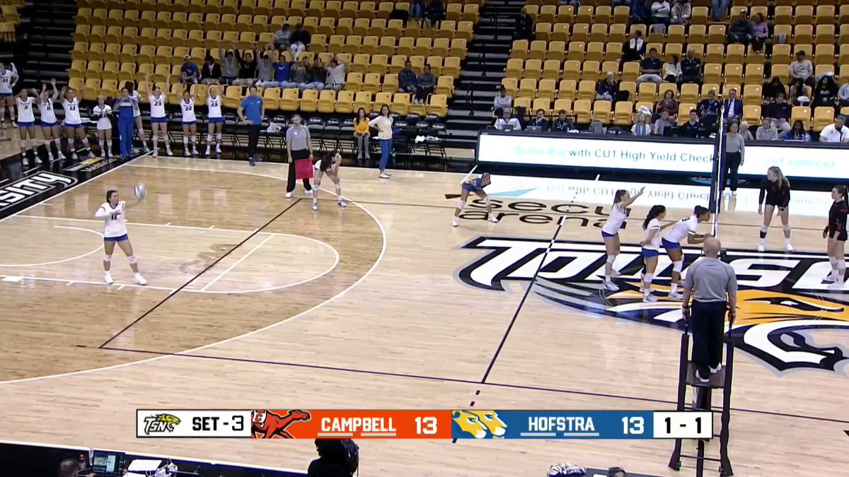 Co-Regular Season Champs @HofstraVB and @GoCamelsVB are in a TENSE BATTLE for the #CAAVB Tournament crown 😬😬 #CAAVB x @FloCollegeVB 💻 | tinyurl.com/5yw75wyt 📊 | tinyurl.com/mvuaab24 CAASports.com/VB
