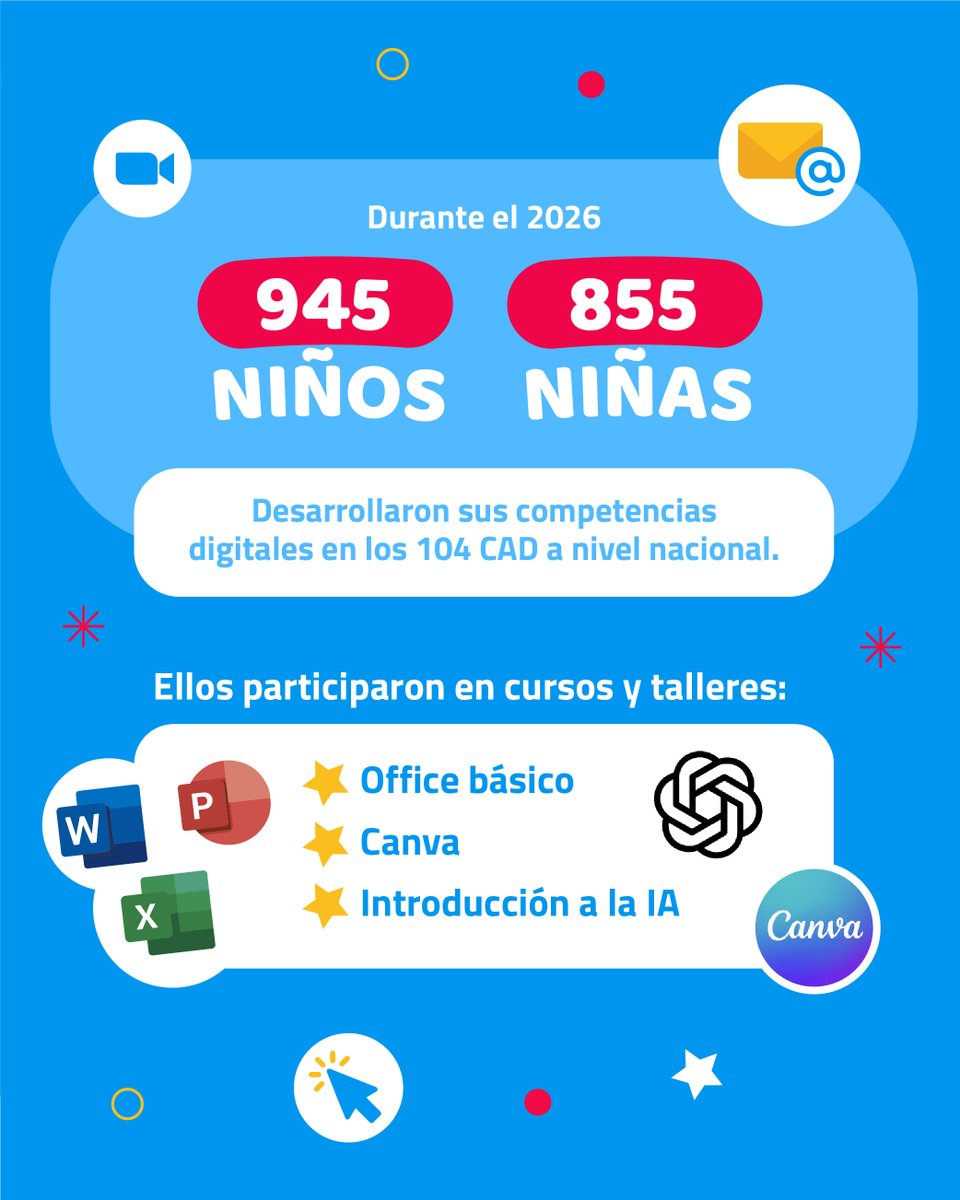 Más de 1800 niños vienen desarrollando sus competencias digitales en los 104 Centros de Acceso Digital #CAD a nivel nacional y el CAD Amazonas, con talleres y cursos como Office básico, Canva e Introducción a la IA.🛜 ¡Visita el CAD de tu localidad!💪✨ #PronatelConecta