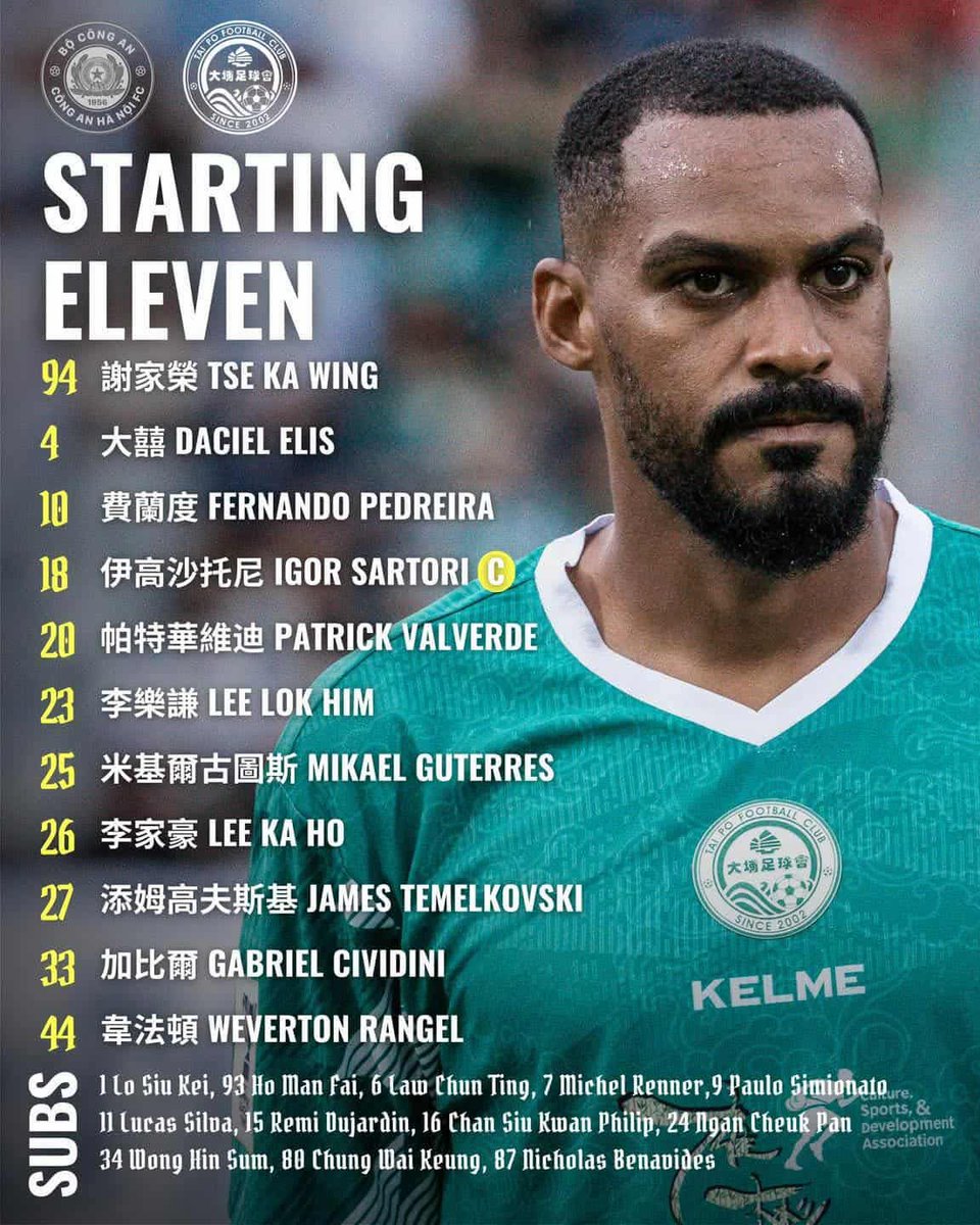#TaiPo v #CAHN 2015 (HK Time) Lee Lok Him starts in Vietnam! The Greeners seek to extend their marvelous performance last time vs Macarthur, they can at any time rely on the help of Renner and Paulinho from the bench. #hkfootball