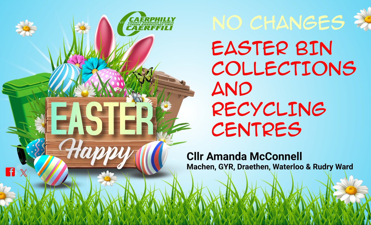 🚛 There will be no changes to refuse & recycling kerbside collections this Easter weekend. 🐣🗑️ Household Recycling Centres will also be open, as normal. To check the opening hours of your local Household Recycling Centre visit: caerphilly.gov.uk/recycling-cent… #CCBC #MachenRudryWard
