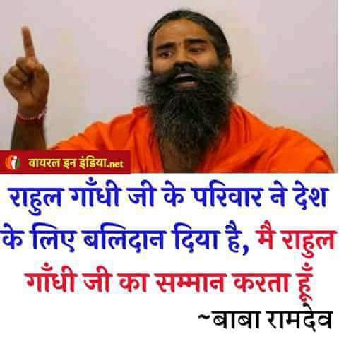 बाबा रामदेव जी की अक्ल ठिकाने आईं ।। आज बाबा रामदेव जी पता चला कि गांधी परिवार के बारे में ।। बाबा जी गांधी परिवार ने अपने खुन पसने देश को सिचा, अपना सबकुछ दिया देश को @RahulGandhi @WithPGV @Indira___Gandhi @office0ffRG_ @congress_ #Gandhi #Congrats5SOS #CongresoPP