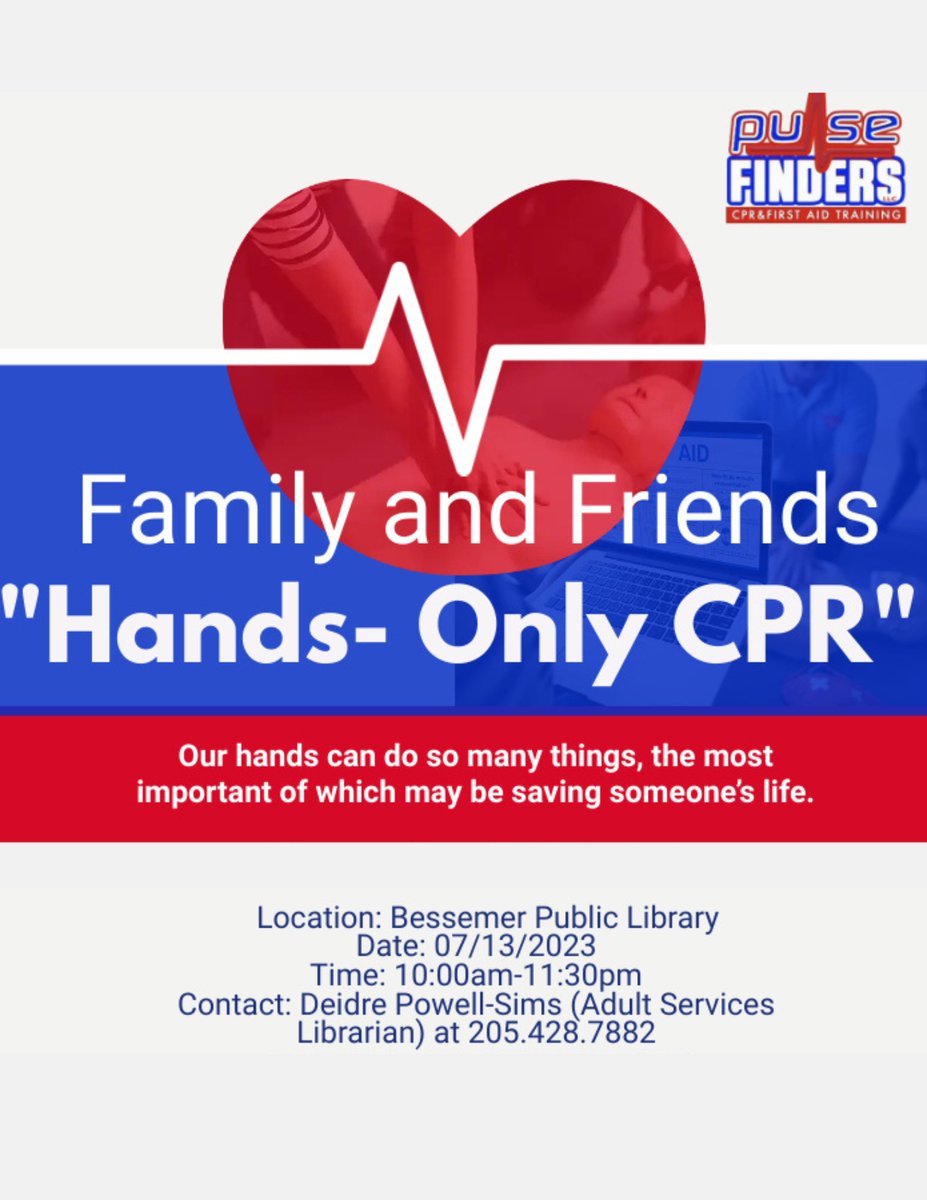 You never know when you'll need to know CPR. Join us for a free class and learn how to save a life! #CPR #CPRclass #savealife #lifesaving #learnCPR