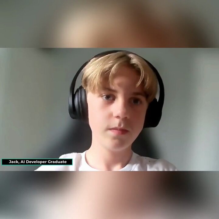 👾 Meet Jack, one of our AI Developer graduates! Jack was on our 16 - 18 AI Developer bootcamp and he did brilliantly! Check out his video to see the web app he built. #CSReBoot #DigitalInclusion #StemEducation #CareersInTech #KidsInTech #ComputerScience #FutureDevelopers