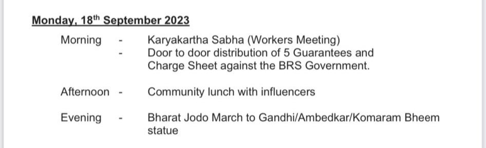 119 మంది కాంగ్రెస్ నేతలు రేపు తెలంగాణలోని 119 అసెంబ్లీ స్థానాల్లో కాంగ్రెస్ పార్టీ తరపున ప్రచారం చేయనున్నారు. 119 Congress leaders from across the country will campaign for the Congress party in 119 assembly seats of Telangana tomorrow. #CWCMeetingHYD #VijayaBheri