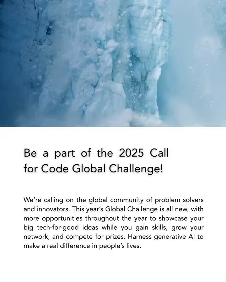 🌍 Be part of the 2025 Call for Code Global Challenge! This year brings more chances to showcase your tech-for-good ideas, grow your skills, and compete for prizes. Harness generative AI to make real impact in people’s lives. 👉 Join now: [insert link] #CallForCode #TechForGood