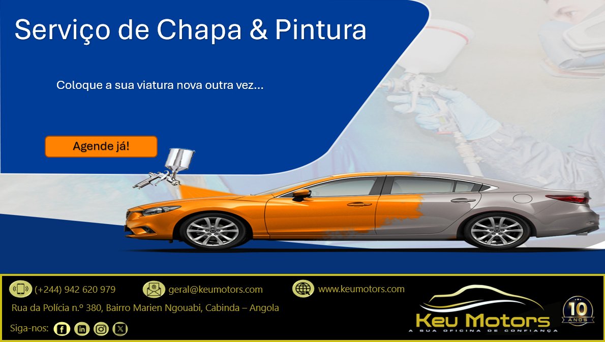 Já pensou em dar uma nova vida à sua viatura? Como o serviço de chapa e pintura da Keu Motors é possível colocar a sua viatura nova outra vez. #KeuMotors #Cabinda #CastrolAutoService #Multimarcas #PinturaAuto
